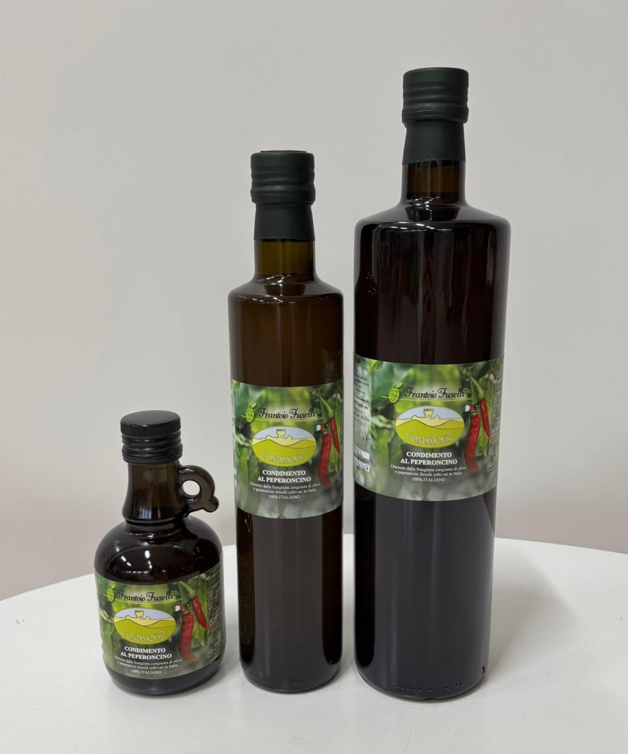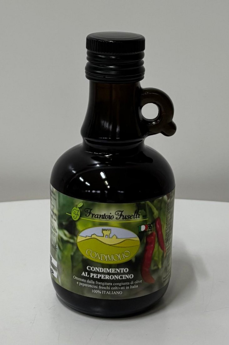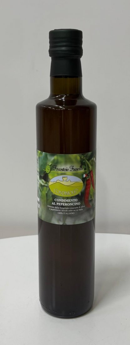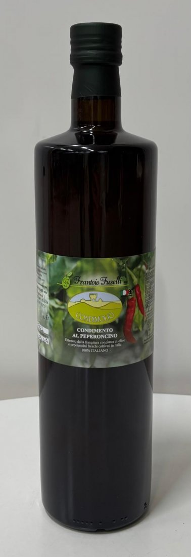 Ottenuto dalla frangitura congiunta di olive e peperoncini freschi coltivati in Italia.