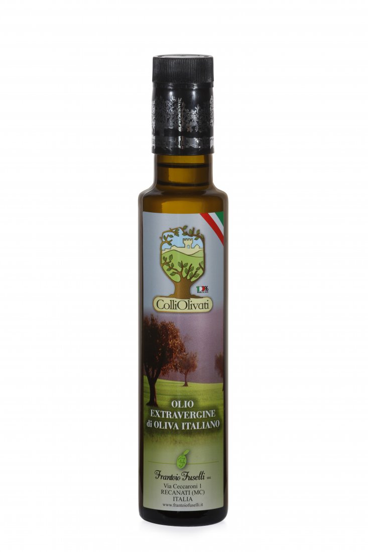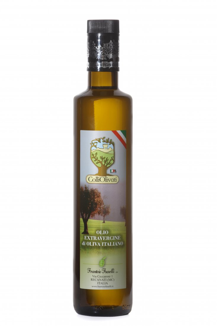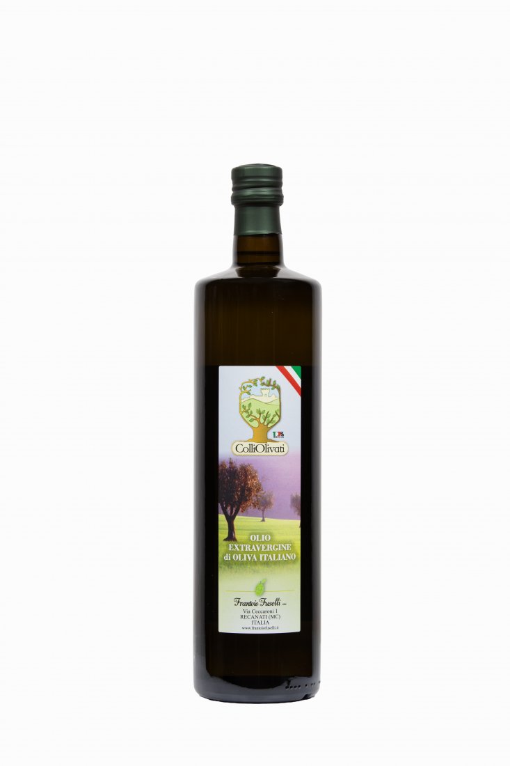 Olio extravergine di oliva 100% italiano ottenuto dalla spremitura di diverse varietà di olive.